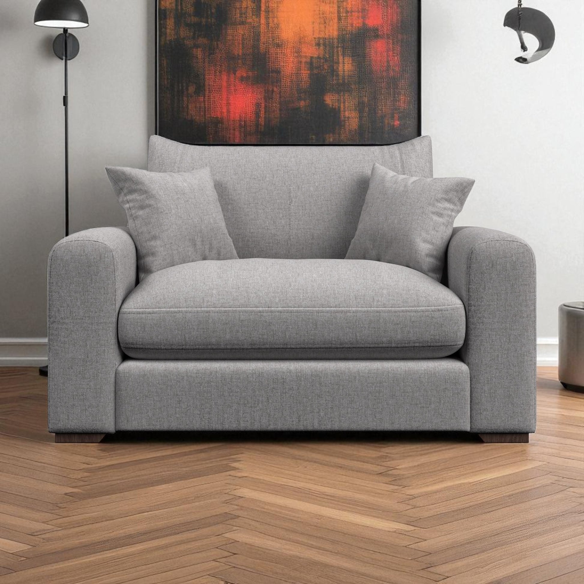 The Albers Snuggler offers the perfect blend of comfort and style with its softly curved arms and sleek knife-edge back cushions. Designed with timeless squared legs, this family-friendly piece adds a cozy, understated charm to any living space, making it an easy choice for everyday relaxation.
