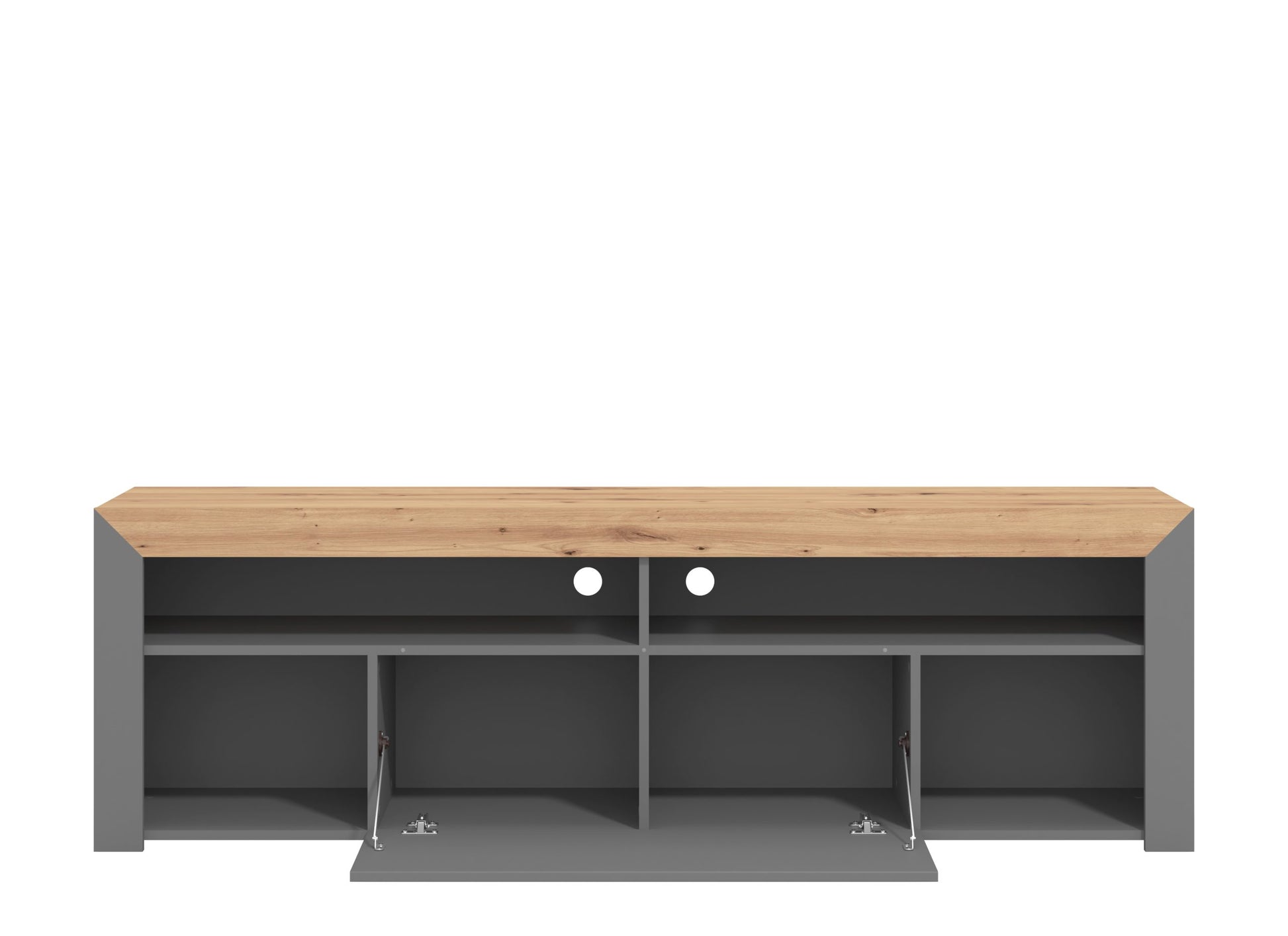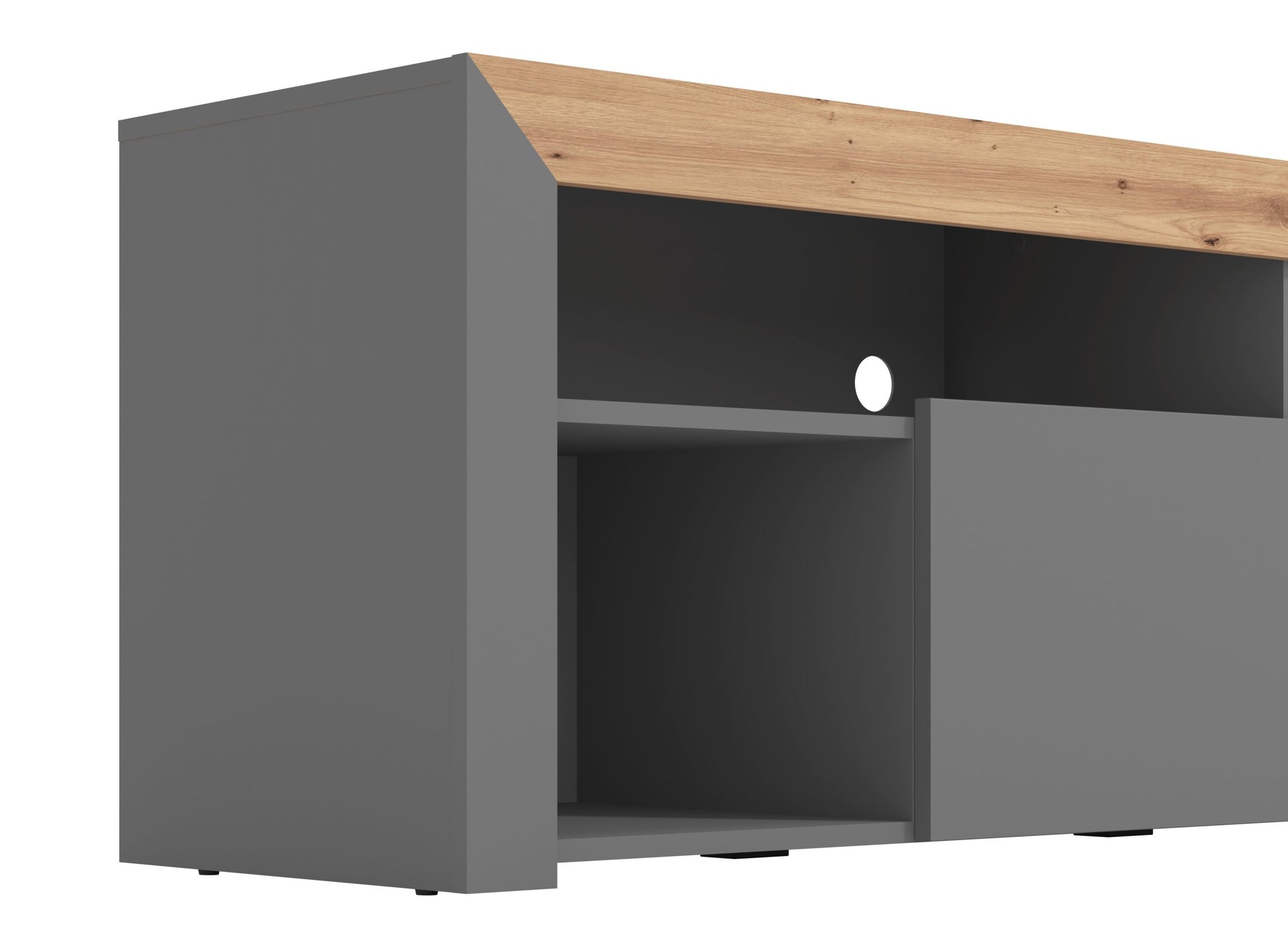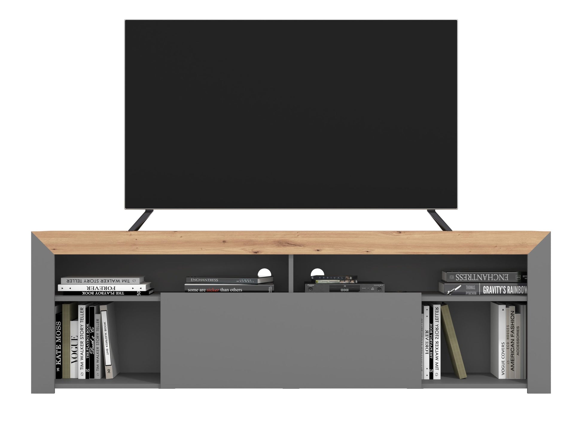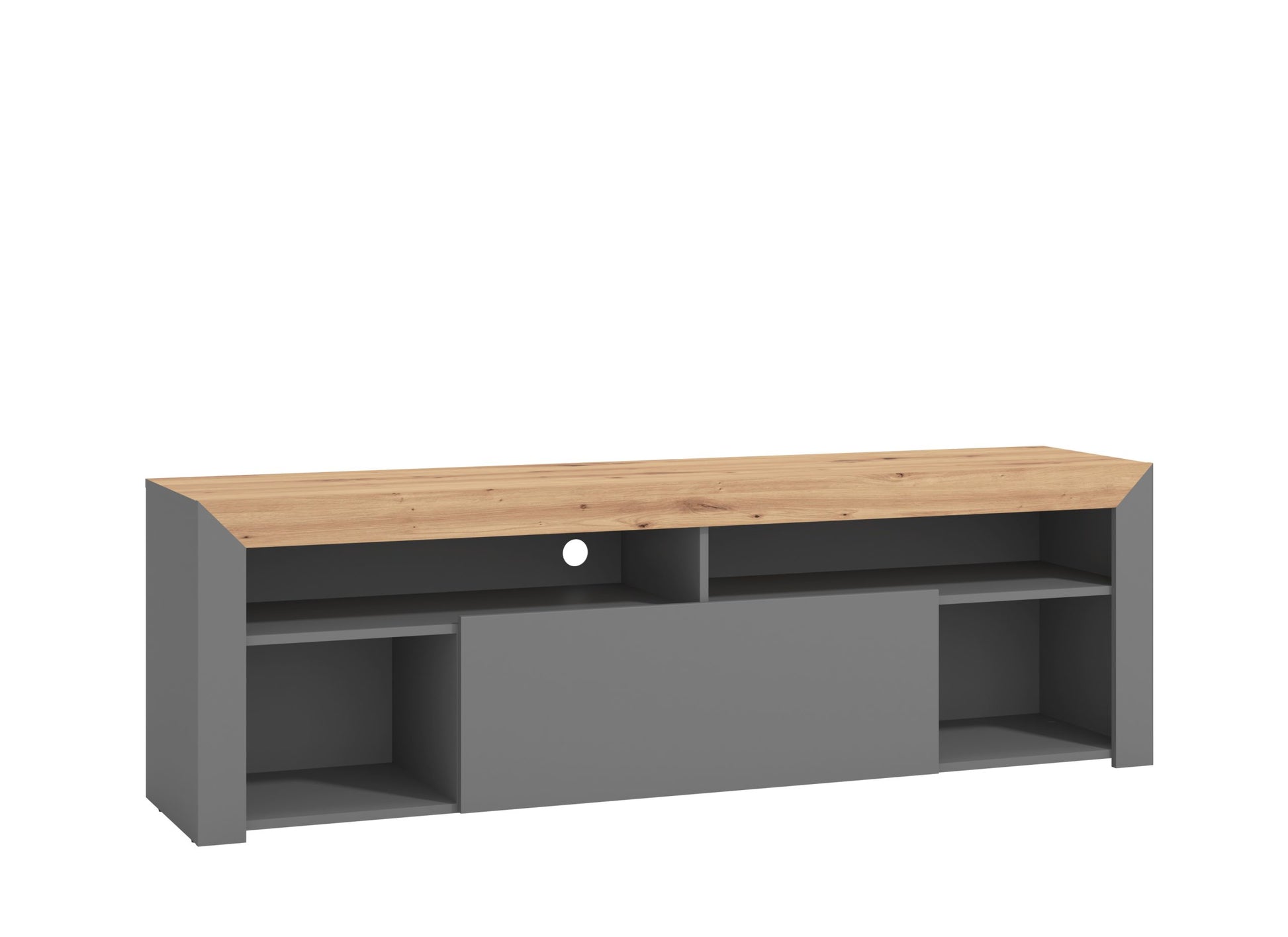 The Almedia TV Unit combines striking artisan oak effect with sleek carbon accents, creating a contemporary focal point for any living space. Engineered to accommodate screens up to 80″ with a robust 40kg weight capacity, this versatile unit handles modern entertainment systems with ease. Its thoughtful design maximizes storage while maintaining clean lines that complement both minimalist and eclectic interiors. Delivered ready to assemble, setup is straightforward and hassle-free. Transform your viewing experience with furniture that balances style, functionality, and sustainability—the smart choice for discerning homeowners.