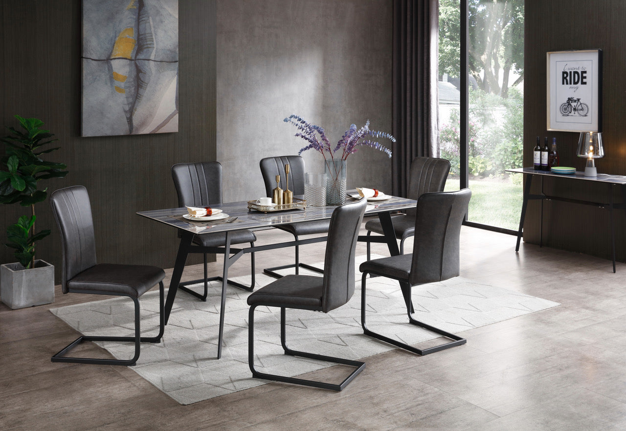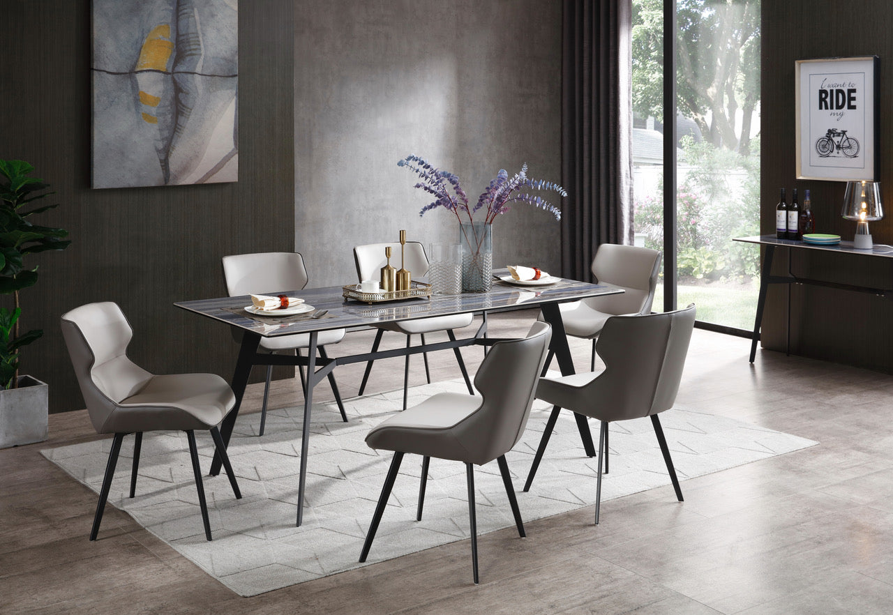 The Blue Mist Dining Table combines contemporary elegance with exceptional durability. Its striking ceramic laminated top features a sophisticated blue mist finish layered on premium 8mm tempered glass, creating a surface that's both visually stunning and built to withstand daily use. Supported by sleek black painted metal legs, this table makes a bold design statement while offering the stability and longevity your dining space deserves. Perfect for modern homes seeking style without compromise.